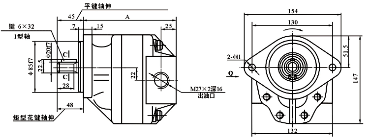 安裝連接尺寸與CB-F系列齒輪泵相同。