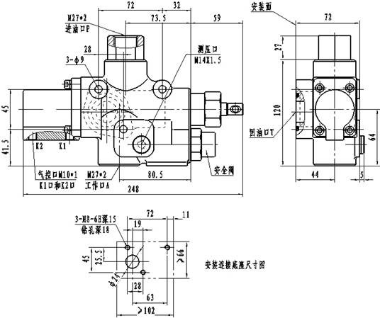 用途與特征: HLQ-L20H型氣動(dòng)控制閥時(shí)我公司為重載自卸車(chē)液壓舉升系統研制開(kāi)發(fā)的換代產(chǎn)品,用于液壓舉升系統中控制舉升缸舉升、中停與下降。該閥的操作由壓縮空氣進(jìn)行控制,可以實(shí)現遠距離(駕駛室)操作。 氣動(dòng)控制閥內安裝有一個(gè)單向閥,防止舉升過(guò)程中由于各種因素造成車(chē)廂的突然下降;氣動(dòng)控制閥內還裝有一個(gè)安全閥,可以使液壓舉升系統工作壓力限定在額定壓力范圍內,起安全保護作用。該閥可以安裝在車(chē)架上,也可以直接安裝在油箱閥座上。